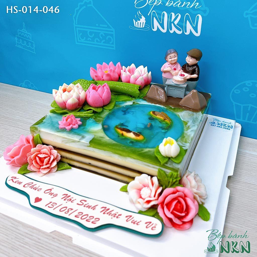 Bánh Kỷ Niệm Hồ Sen Cá Lội Tặng Ông Bà (HS-014-046)