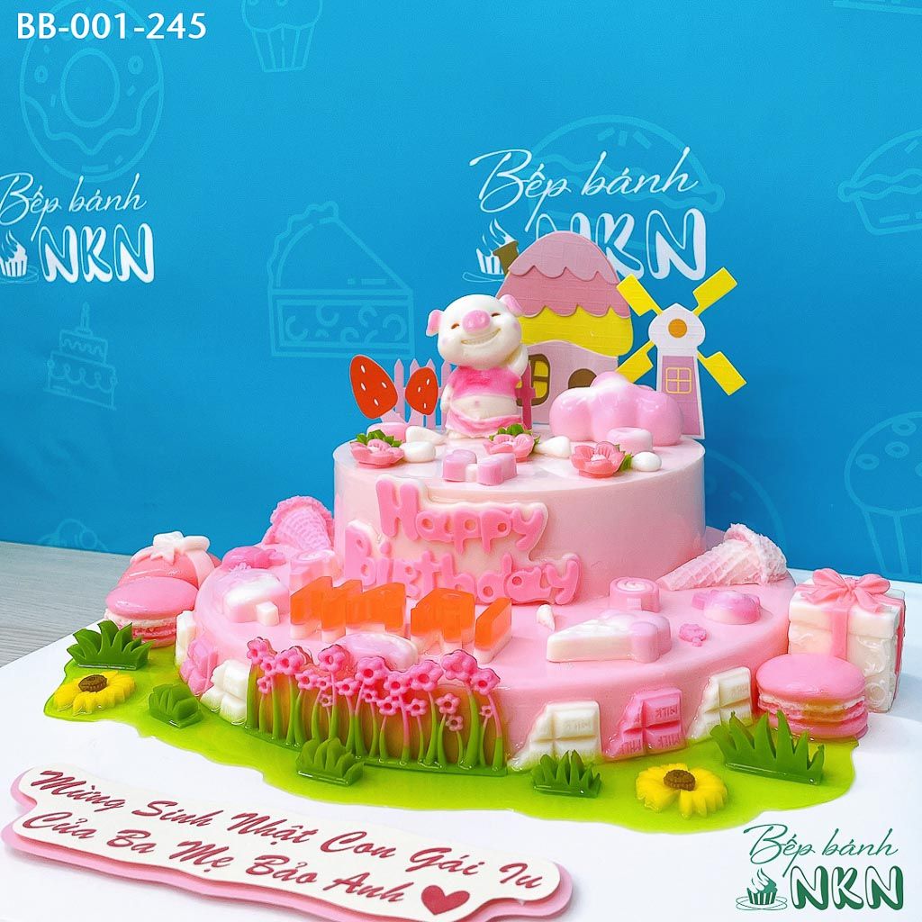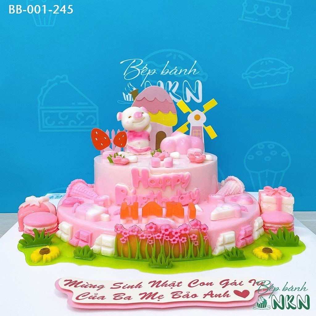 Bánh Sinh Nhật 2 Tầng Bé Heo Hồng Và Ngôi Nhà Cối Xay Gió (BB-001-245)