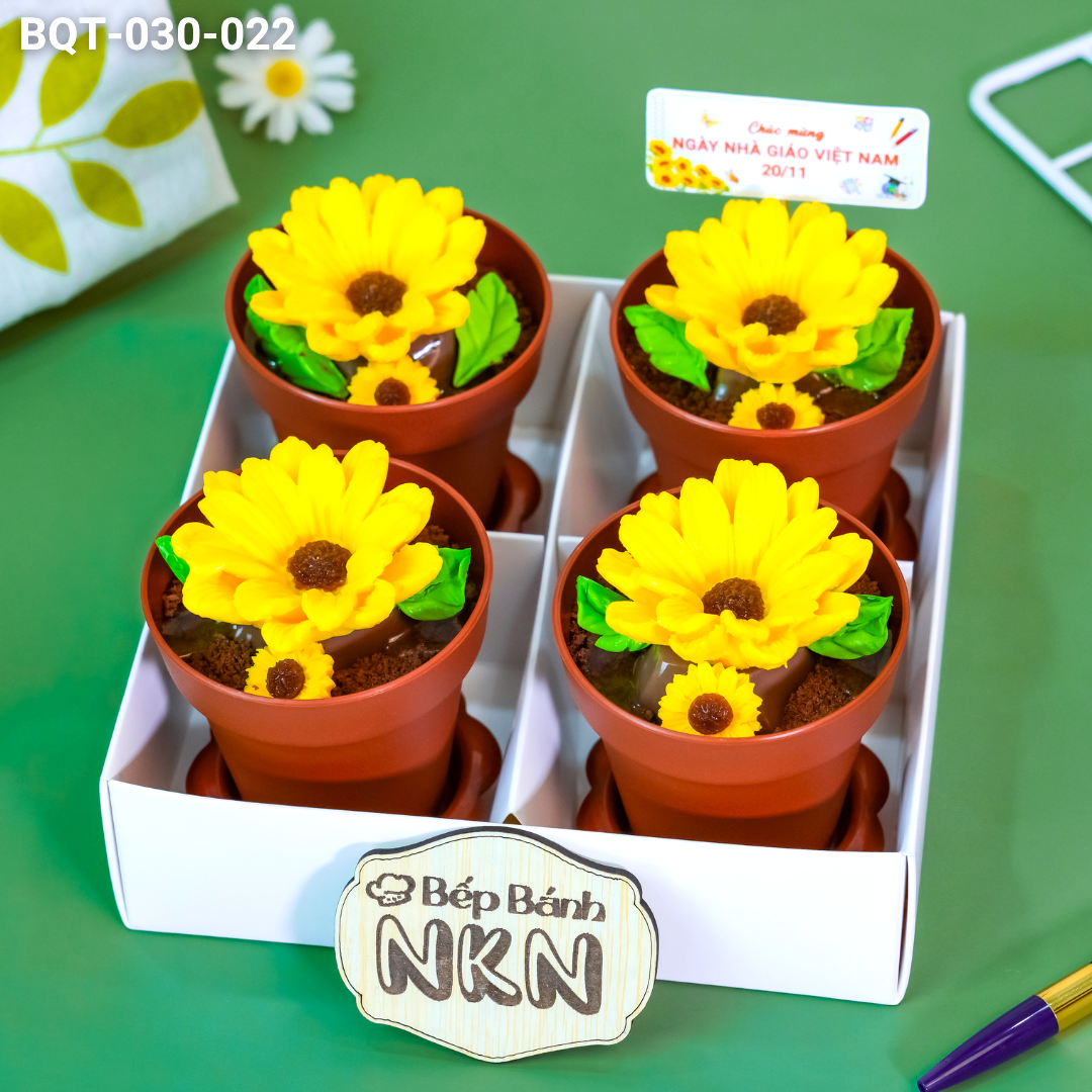 Hộp Bánh Quà Tặng 4 Chậu Hoa Hướng Dương Kèm Xẻng (BQT-030-022)