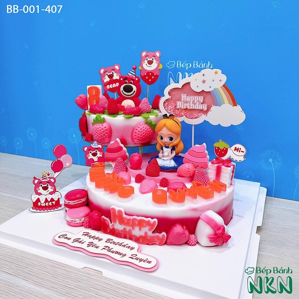 Tháp Bánh Sinh Nhật 2 Tầng Gấu Dâu Lotso Và Công chúa Alice (BB-001-407)
