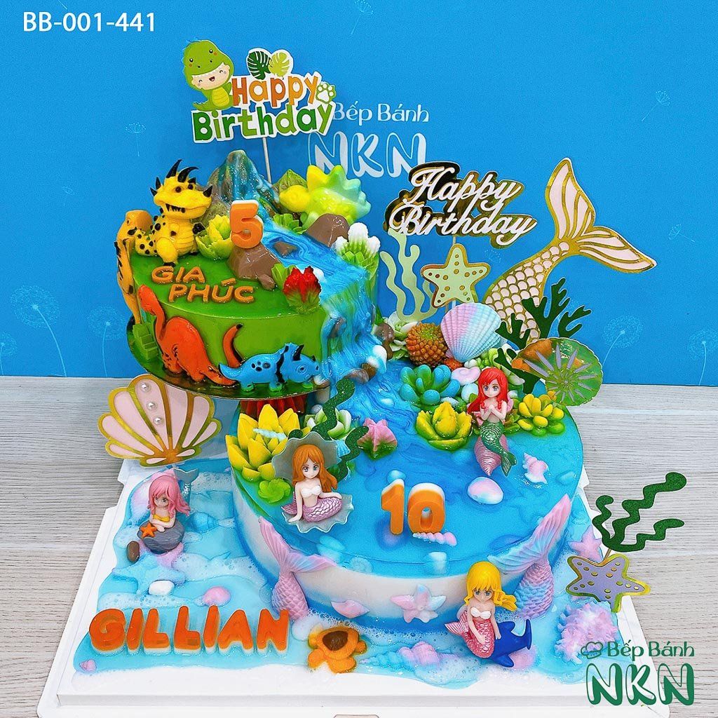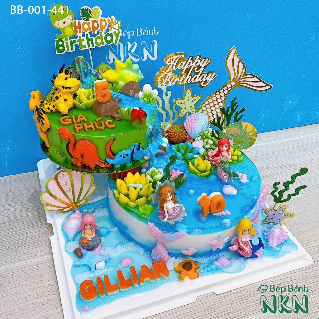 Tháp Bánh Sinh Nhật Đôi Khủng Long x Tiên Cá Cho Bé (BB-001-441)